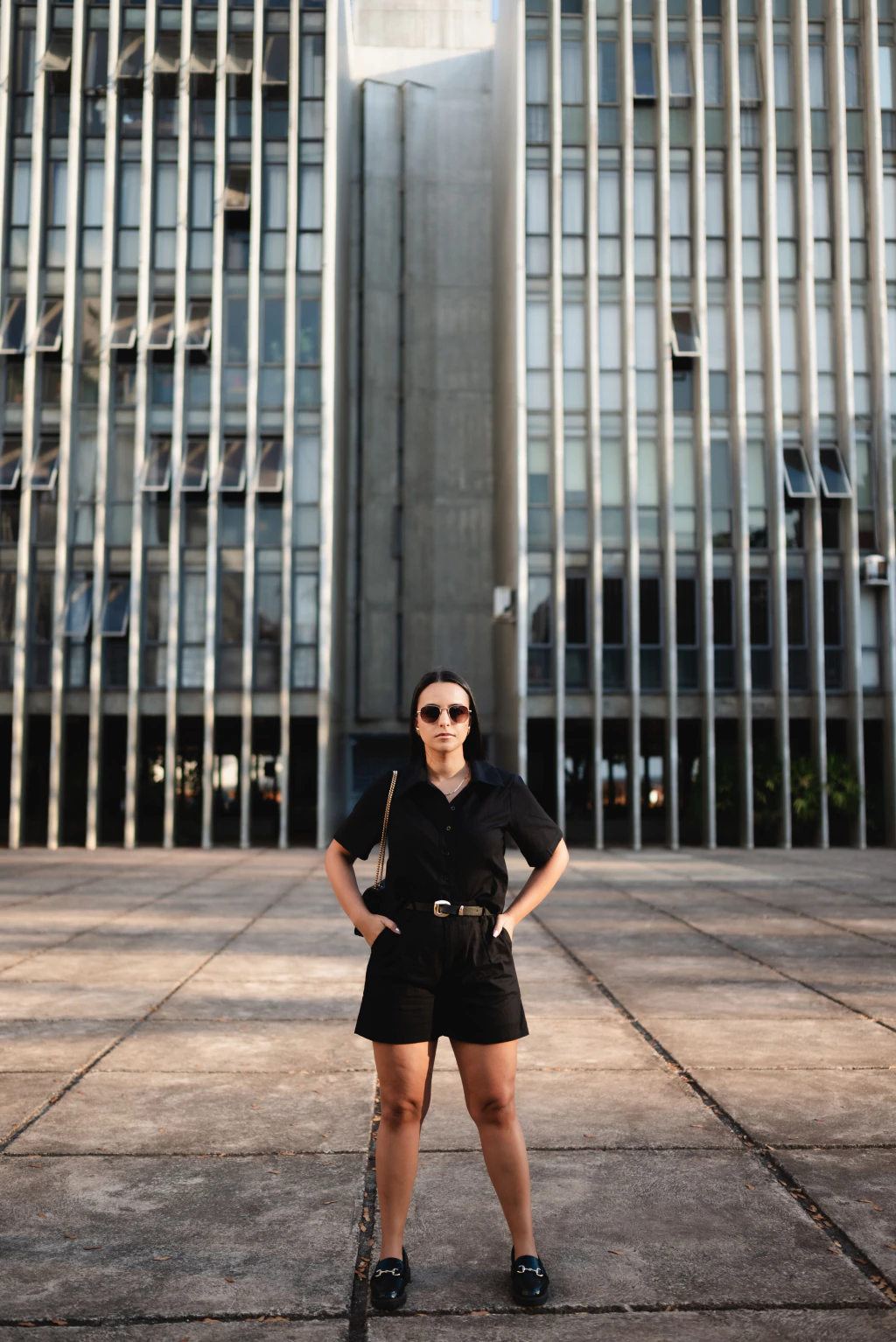 Medidas da modelo: Altura: 1,55m | Busto: 81 cm | Cintura: 67 cm | Quadril: 92 cm